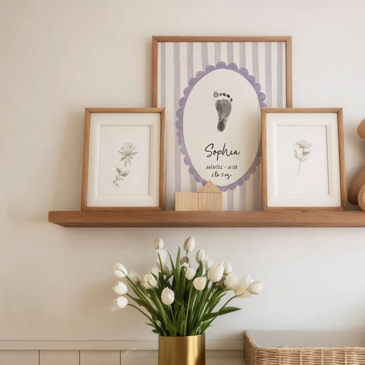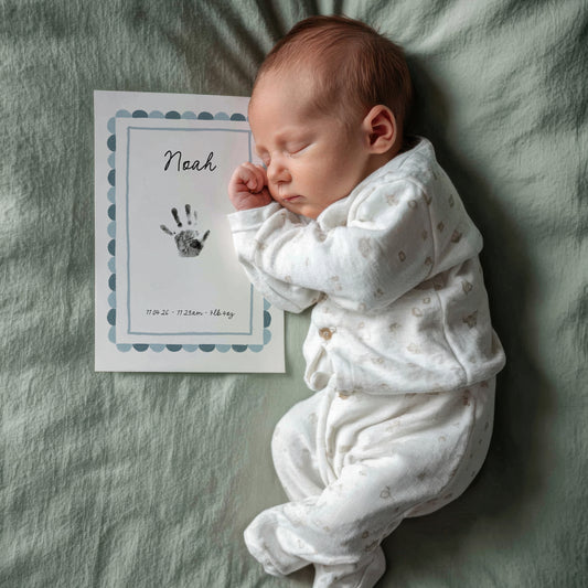 Personalised new baby keepsake print UPLOAD YOUR OWN handprint/footprint kit -scallop