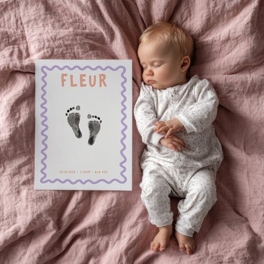 Personalised new baby keepsake print UPLOAD YOUR OWN handprint/footprint kit - wavy