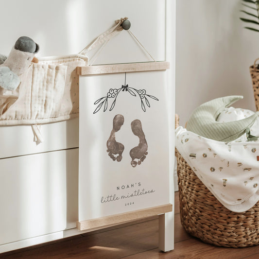 Personalised baby's Christmas mistletoes keepsake footprint kit