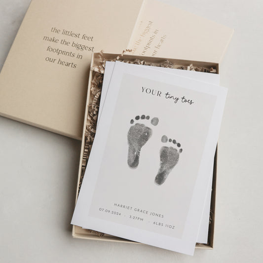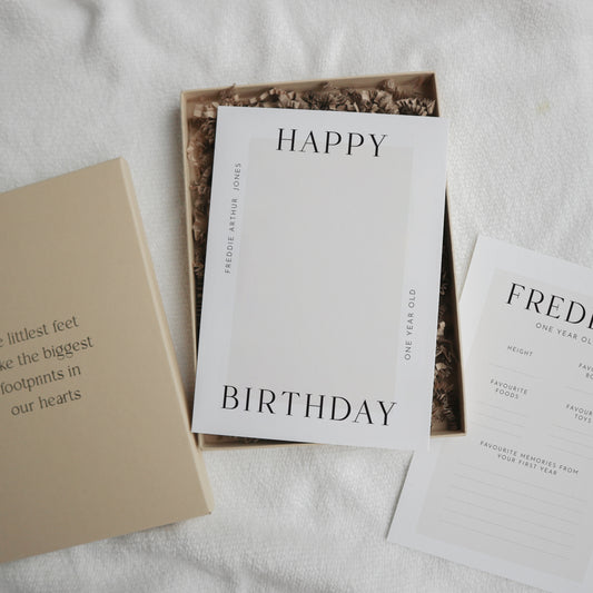 Personalised first birthday keepsake print baby handprint/footprint gift box