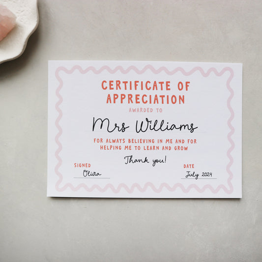 Personalised Best teacher certificate of appreciation postcard