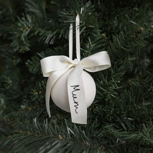 Personalised bow ceramic Christmas bauble