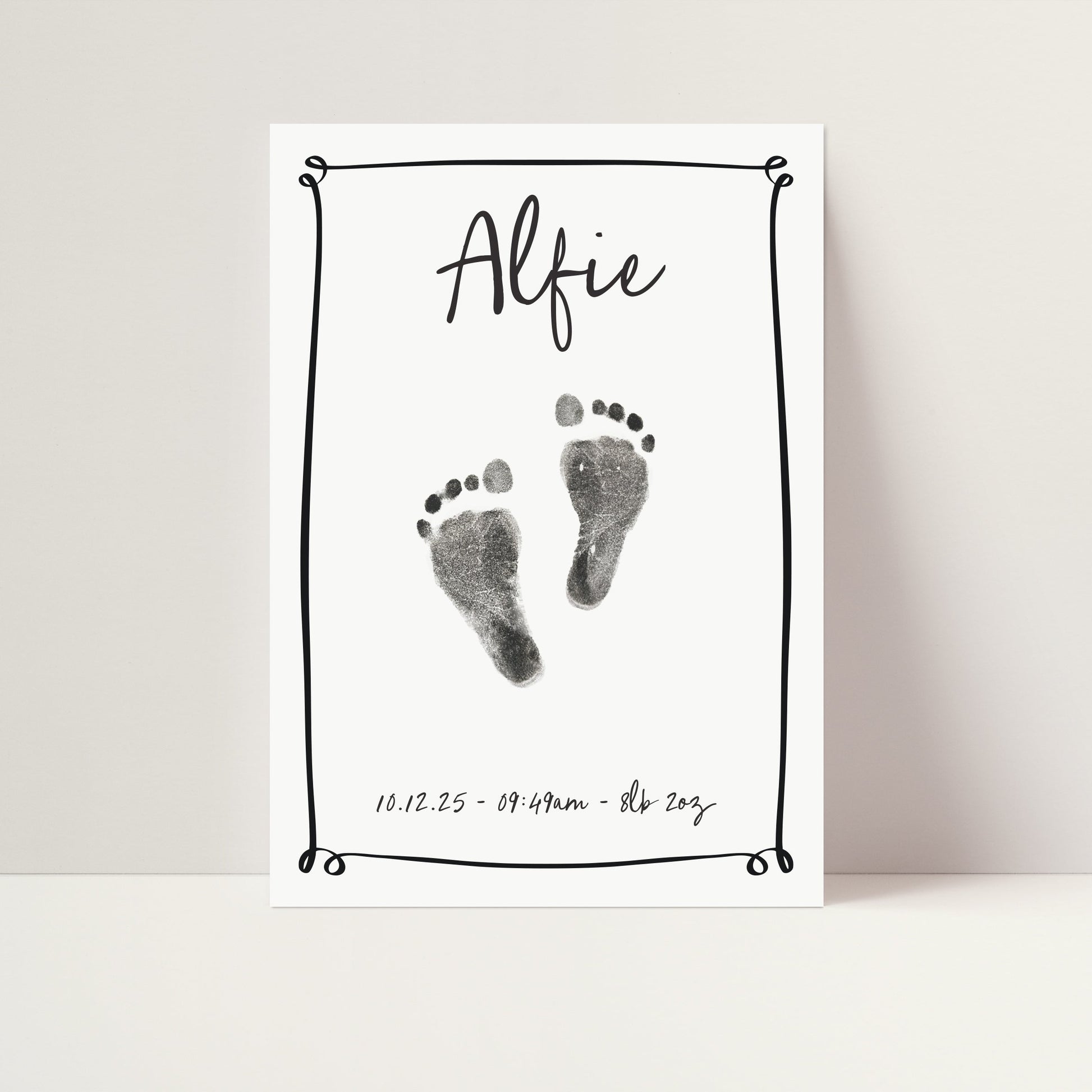 This unique nursery print allows you to add your baby’s actual hand or footprint directly onto the artwork, creating a truly one-of-a-kind memory. It features a fun, charming design and is fully personalised with all those important birth details: