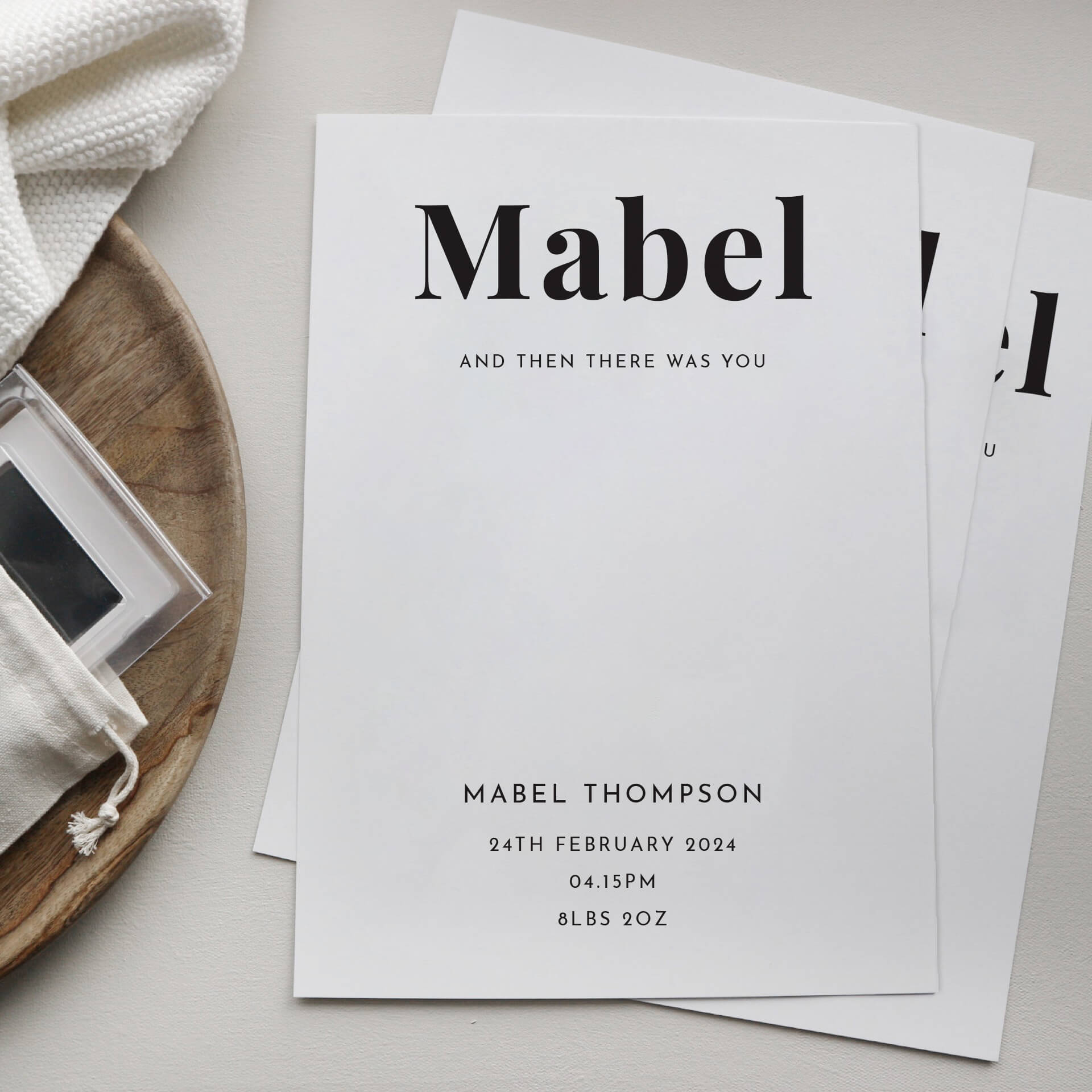 Our nursery print features a contemporary design that can be personalised with your baby's name, birth date, time and weight. Along with the text "and then there was you". Whether you're welcoming a new addition to your own family or searching for the perfect new baby gift for friends or loved ones, our personalised new baby print is a timeless memory of those special moments.