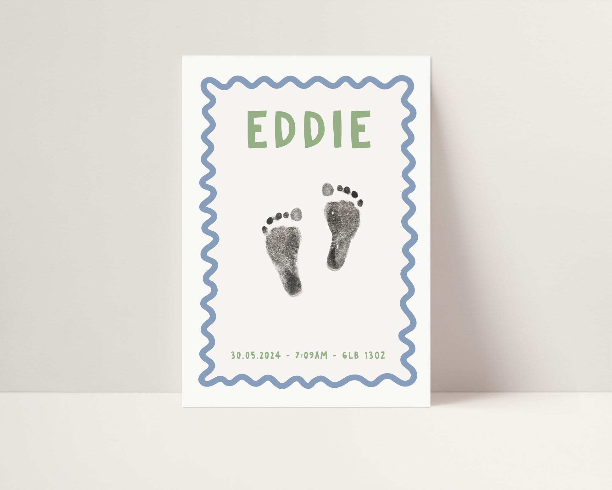 This Personalised new baby print will be a treasured keepsake that celebrates the arrival of your precious little one. This unique print allows you to capture those tiny newborn toes by adding their hand or footprint directly onto the artwork, creating a heartfelt keepsake that will be cherished for years to come.