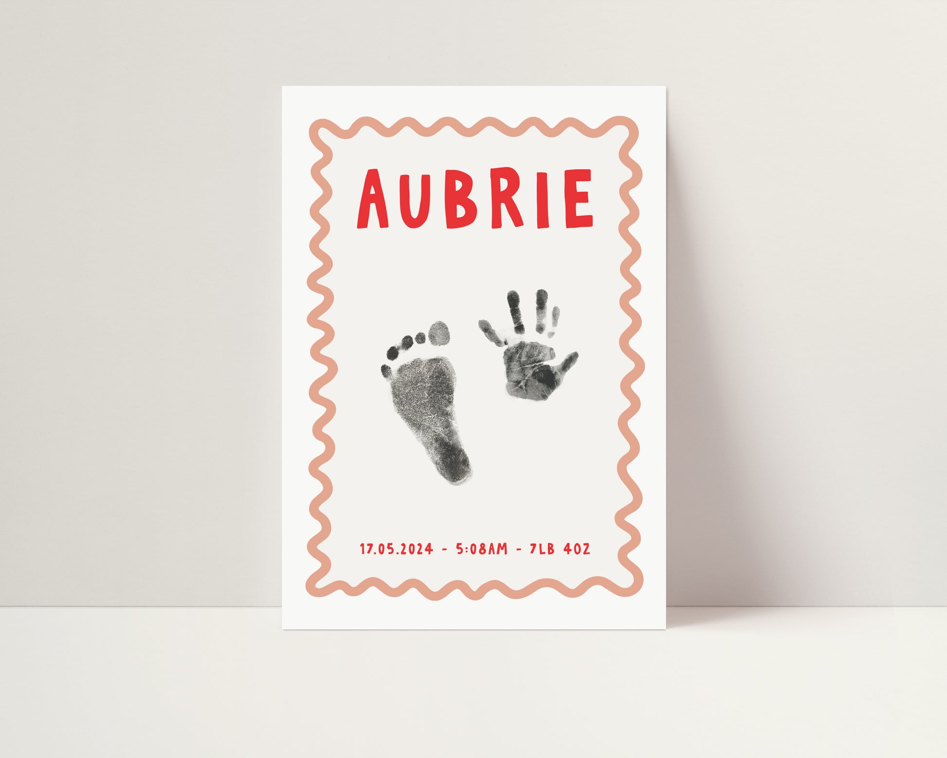 Adding your baby's hand or footprint is a simple process. With the option of an ink-less print pad, meaning there is zero mess and no ink will touch your baby's precious hands or feet. Or add a baby safe ink pad which is a traditional ink pad that will add ink to your baby's feet or hands that easily wipes off afterwards. With one of these option you can easily capture those tiny fingers or toes and imprint them onto the designated space on the print. The result is a beautiful and personal touch that makes each print truly one-of-a-kind.