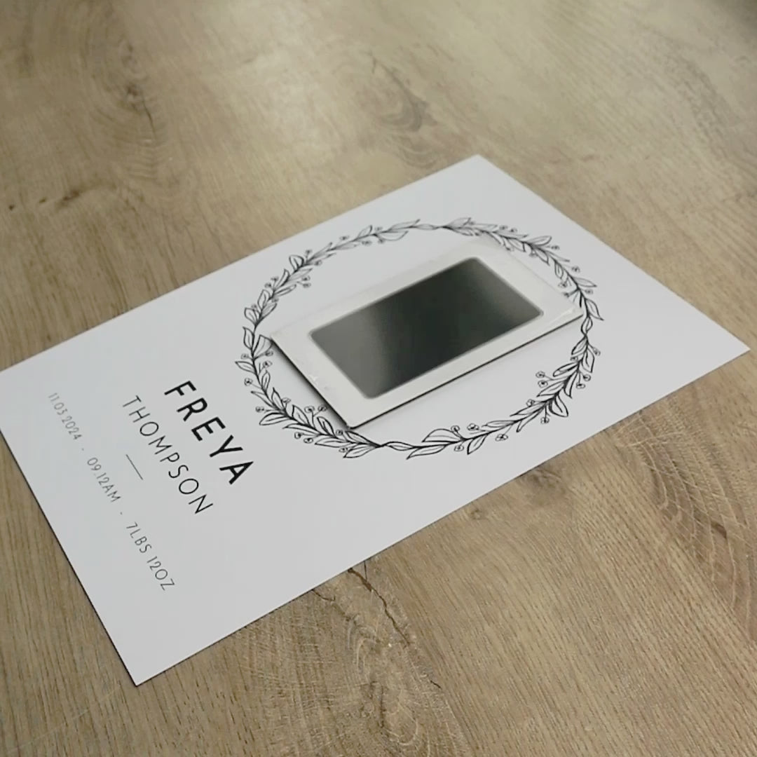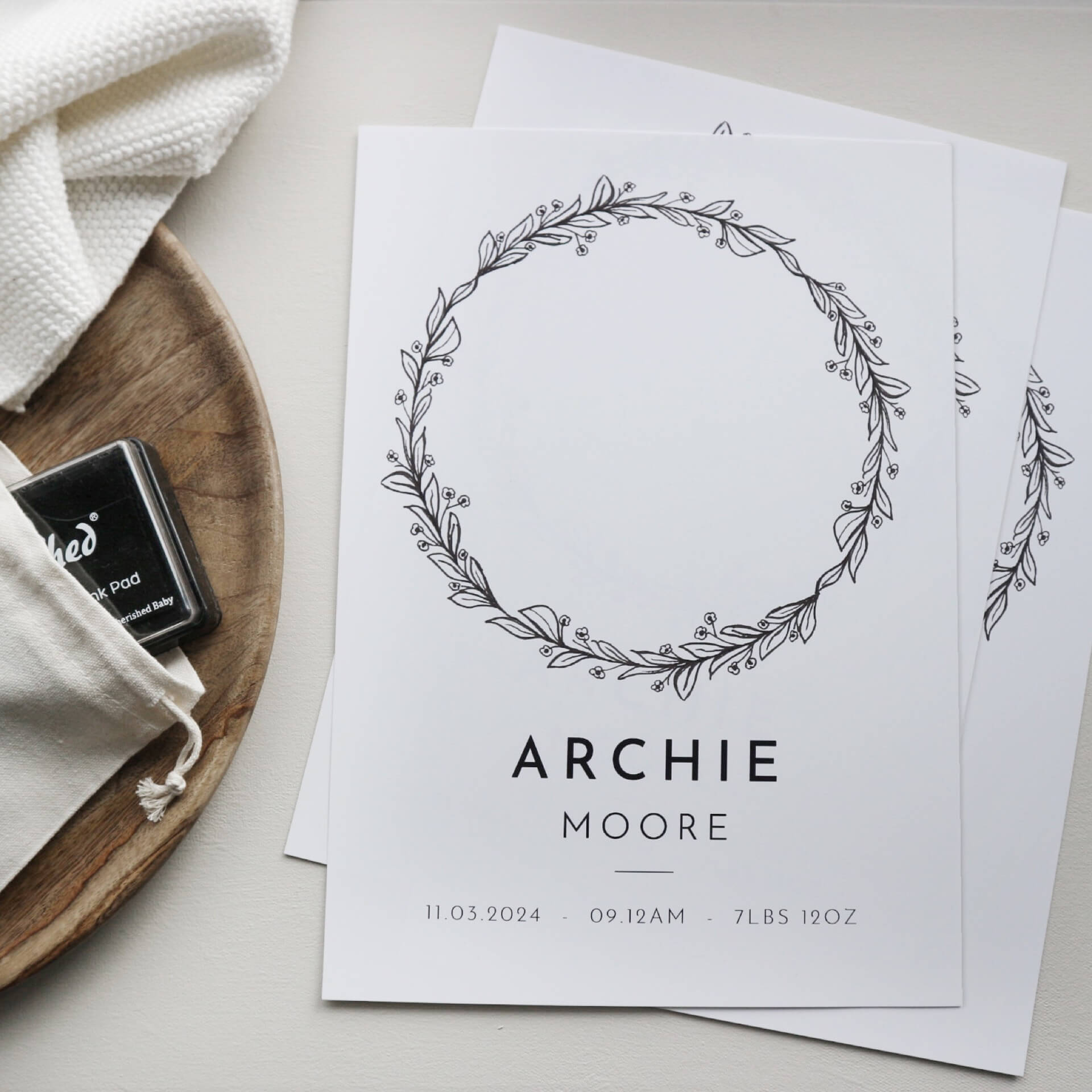 Our nursery print features a beautiful wreath design that can be personalised with your baby's name, birth date, time and weight. Whether you're welcoming a new addition to your own family or searching for the perfect new baby gift for friends or loved ones, our personalised new baby print is a timeless memory of those special moments.