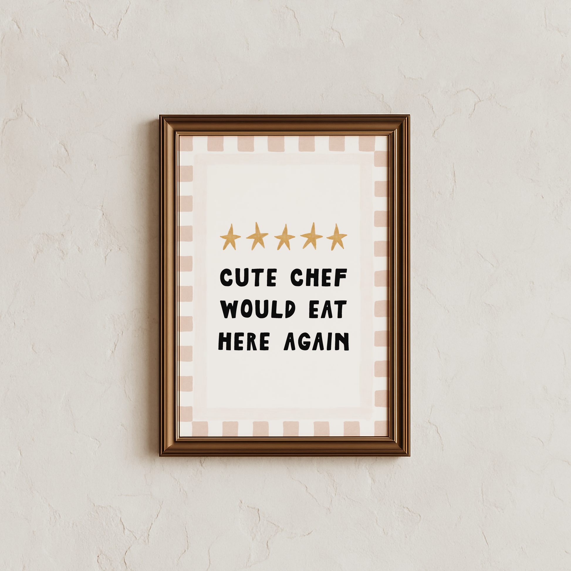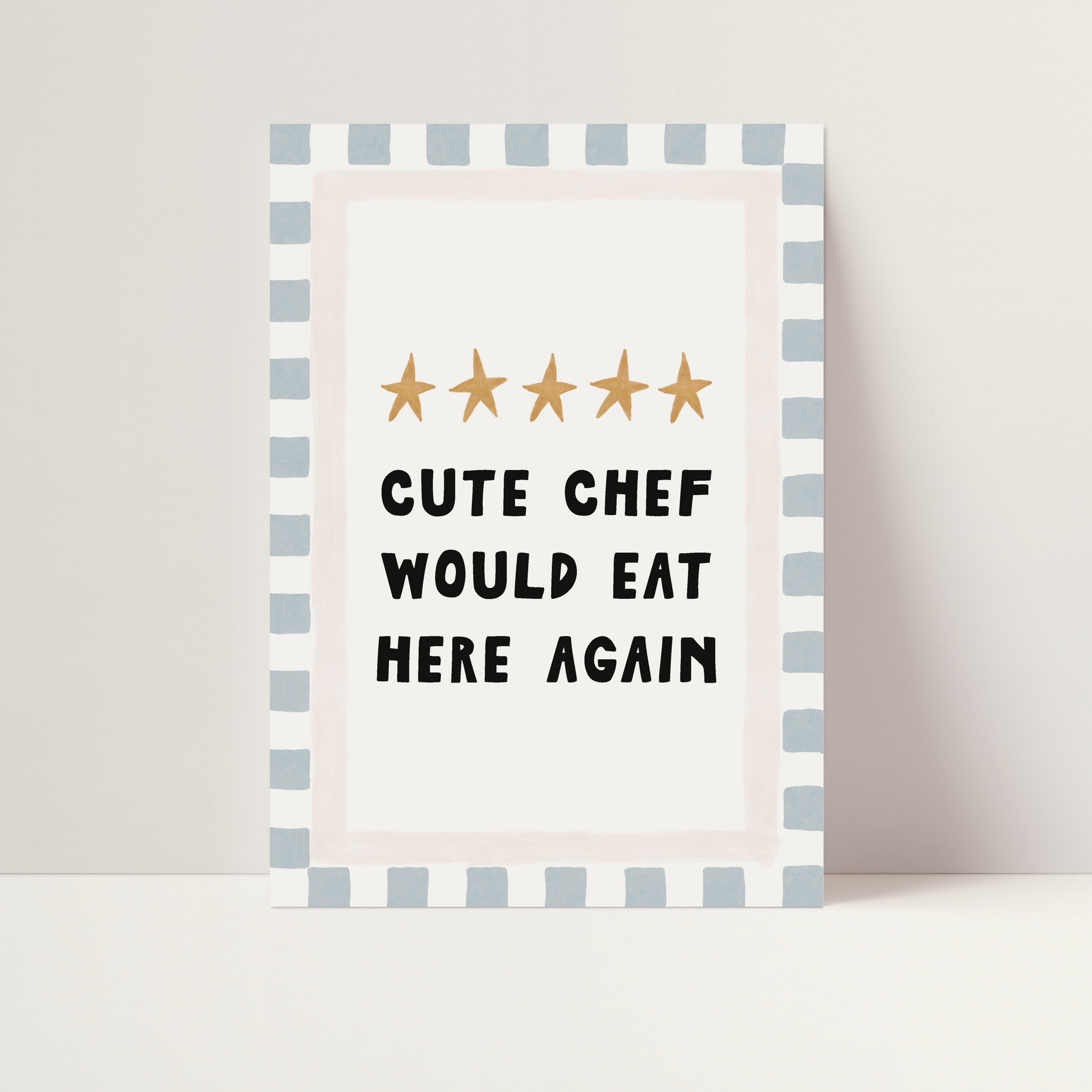 Add the perfect dash of charm to your child’s play kitchen or playroom with this whimsical A4 “Cute Chef Would Eat Here Again” Print! Designed with playful, hand-painted style borders and five stars, this print brings restaurant-quality fun to any pretend café, bistro, or culinary corner.